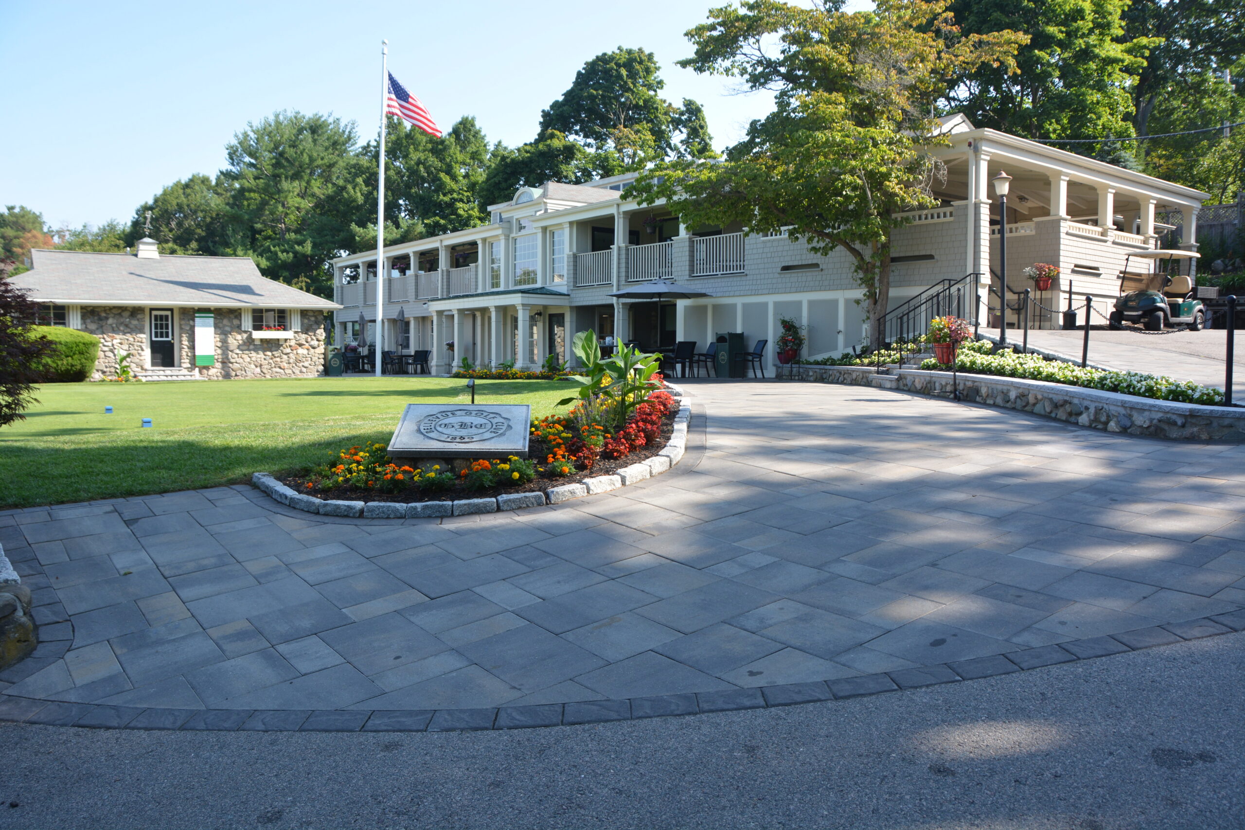 As part of a long-term renovation plan, the Bellevue Golf Club contacted Stefano’s Landscaping for a quote to complete extensive work on multiple patio and landscape areas spanning multiple areas of their property. While this was a very straightforward project, the timeline was critical. All work be completed in the offseason so as not to limit access to the golf, tennis and swim facilities upon which the members relied. With this in mind, the Stefano’s team proposed a tight project timeline that utilized the very ends of the offseason to maximize what was left of the warm weather while still minimizing disruption for the club’s members.