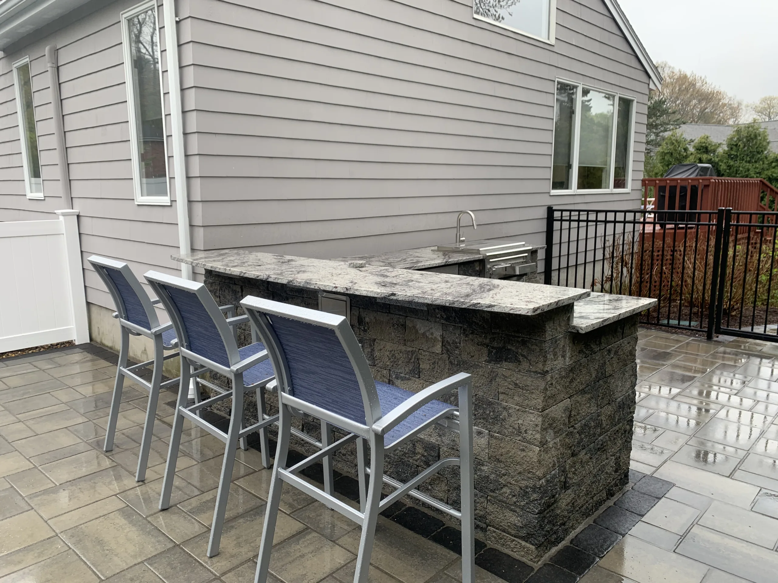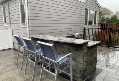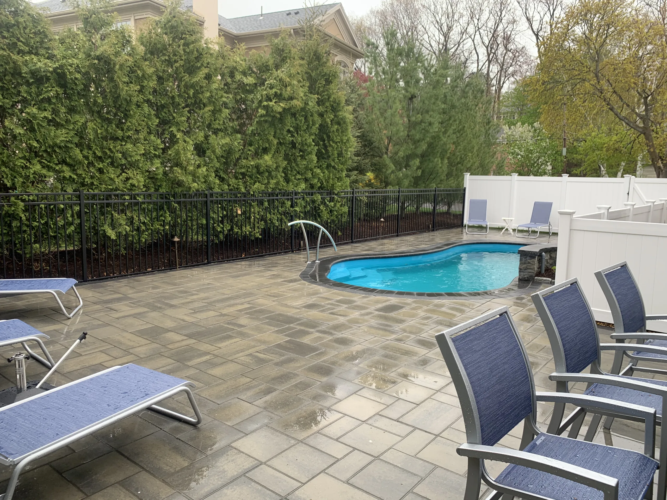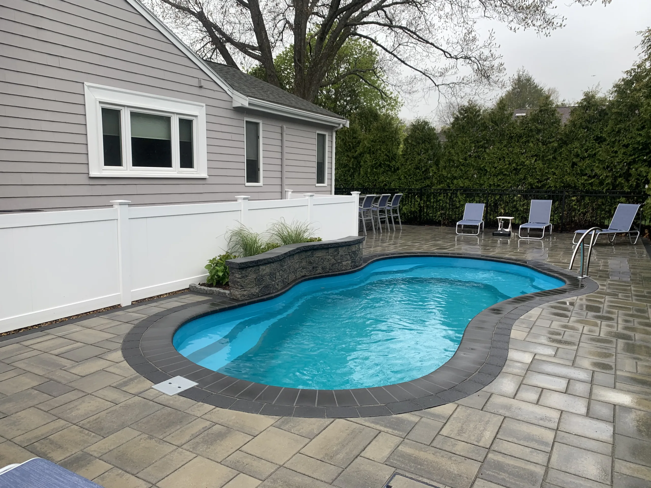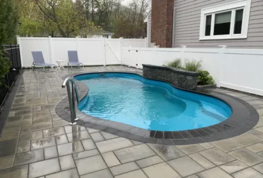 In Newton MA, This backyard transformation took a narrow, underutilized space and turned it into a modern outdoor escape. The fiberglass pool fits perfectly between the house and the property line, framed with a clean paver surround and minimalist landscaping to make the space feel larger than it is. Despite the tight constraints, the final product delivers both style and performance, offering the homeowner a low-maintenance, high-impact pool area that feels like a natural extension of the home. The project showcases how smart design and precise execution can overcome even the most restrictive site conditions.