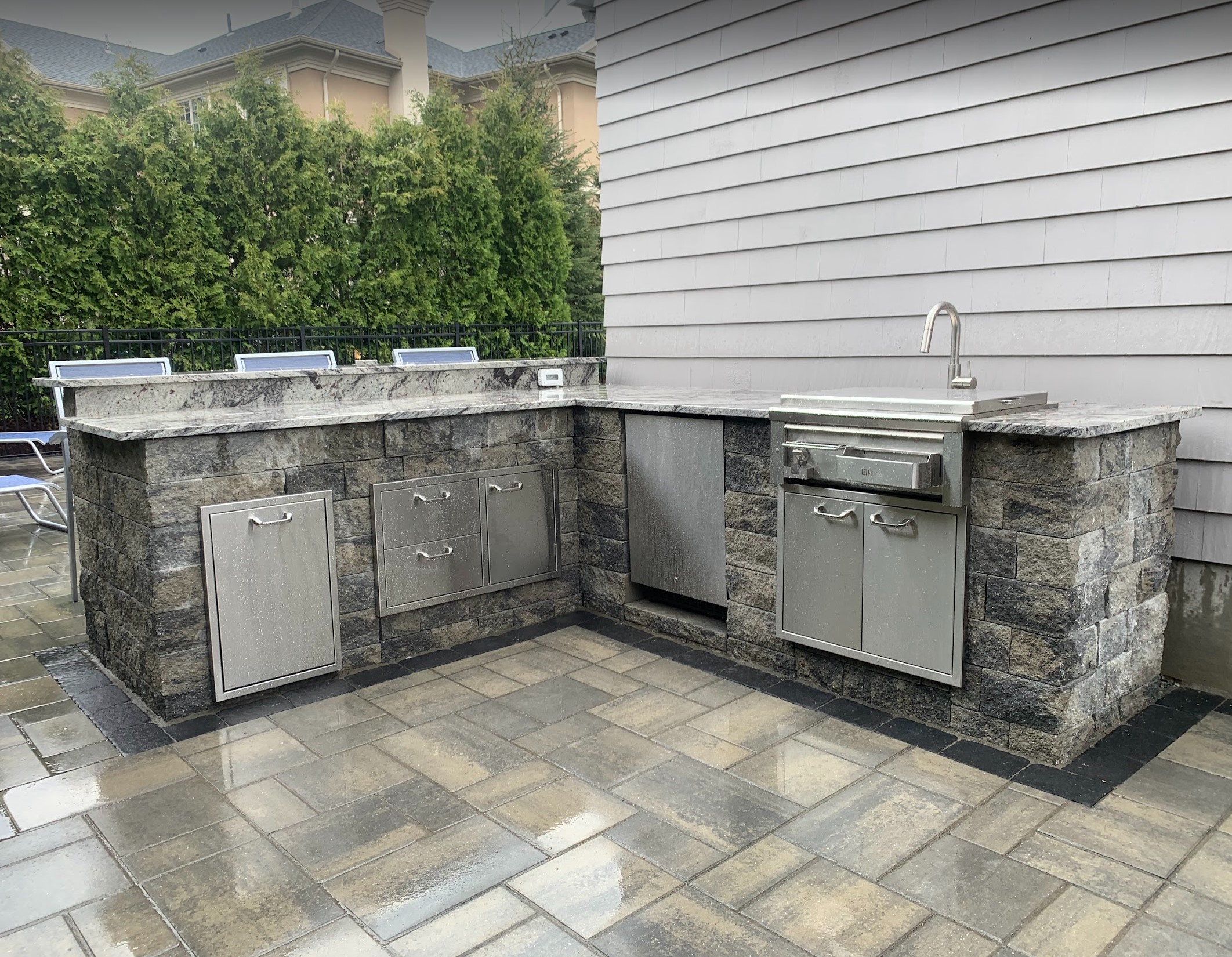 With only a few feet of clearance from the house on one side and the property line on the other, the pool size and shape had to be carefully selected to meet zoning regulations while still giving the homeowner the functional and visual impact they were looking for. Every inch mattered. The layout was scrutinized multiple times to ensure proper spacing for code compliance, as well as enough room for decking, drainage, and safe movement around the pool.
