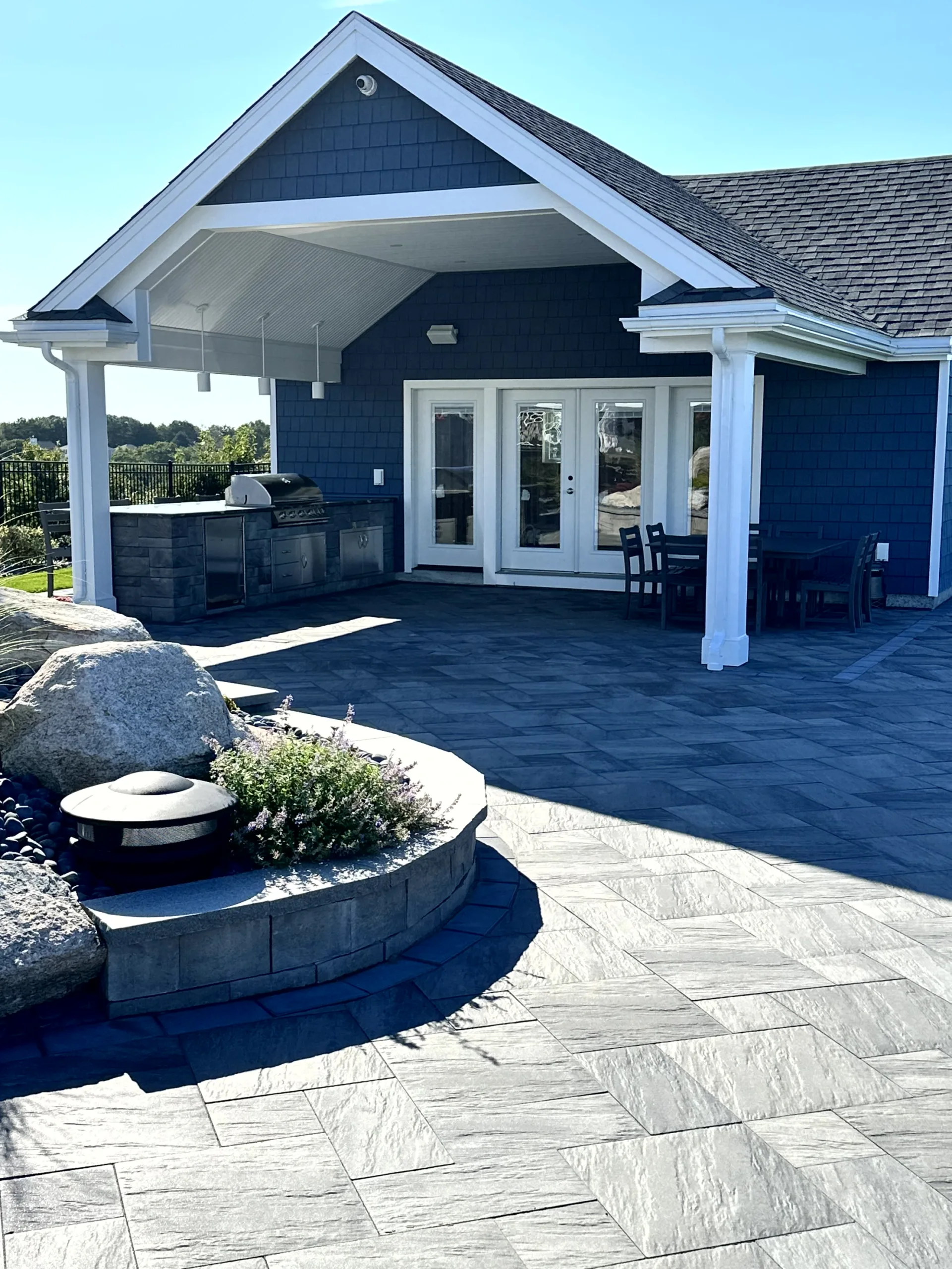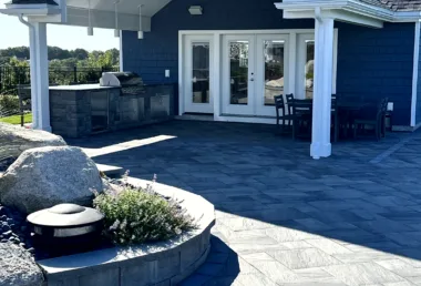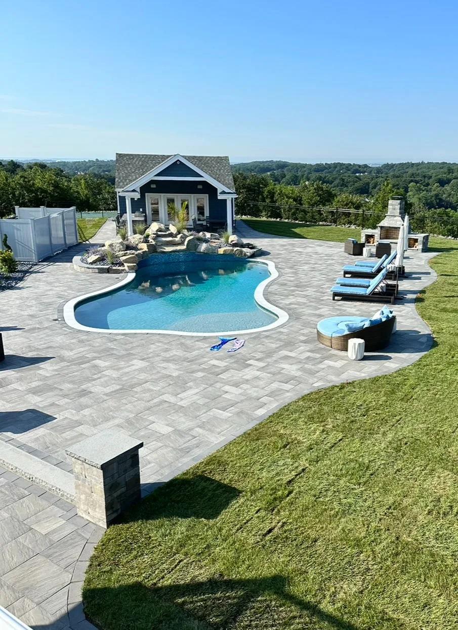 The Outdoor Oasis in Peabody, MA, is more than just a backyard retreat; it’s a sanctuary for the busy business owner and their family. Months of meticulous planning and client meetings culminated in the flawless execution of this project. Starting with the construction of a sturdy retaining wall and leveling of the pool area, followed by precise utility placement and finish grading, every detail was carefully considered. The cabana’s foundation was expertly laid out, creating a focal point for the outdoor space. But the true highlights are the custom-built outdoor kitchen, inviting fireplace, cozy firepit, and elegant sitting walls. The landscape was meticulously adorned with lush plantings, each receiving the perfect amount of water through drip irrigation, while the sod was expertly laid with a reliable irrigation system in place. This Outdoor Oasis is not just a space; it’s a work of art that enhances every moment spent in its embrace.