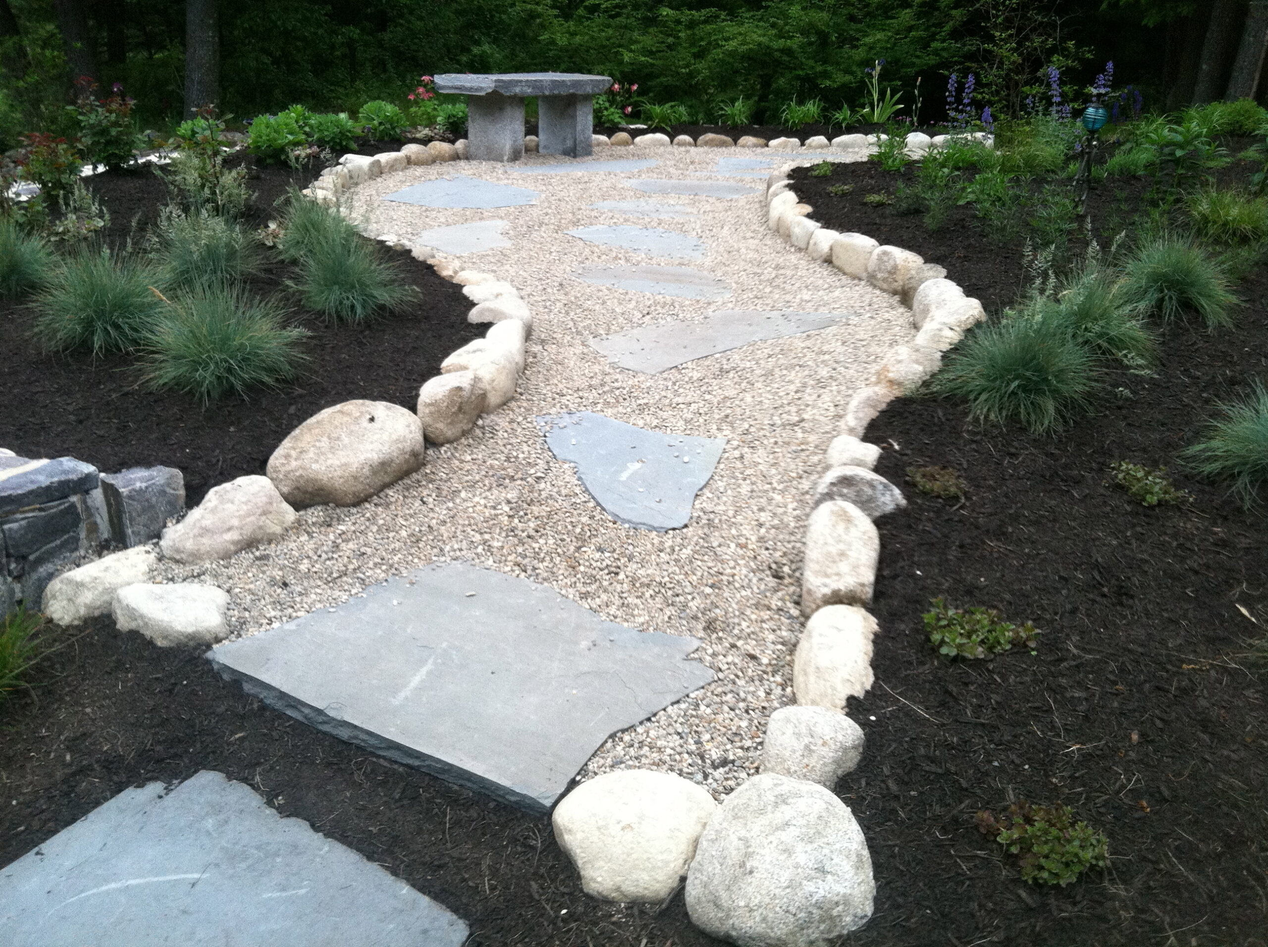 If your lawn is thinning, patchy, or outdated, we offer full-service lawn installations using premium sod or custom-blended seed to create lush, healthy turf. Our planting services bring color, texture, and structure to your yard through thoughtfully selected perennials, shrubs, and trees suited to your site conditions and personal style. For added definition and low-maintenance beauty, we install crushed stone walkways, drive edges, and planting beds that enhance both appearance and drainage.